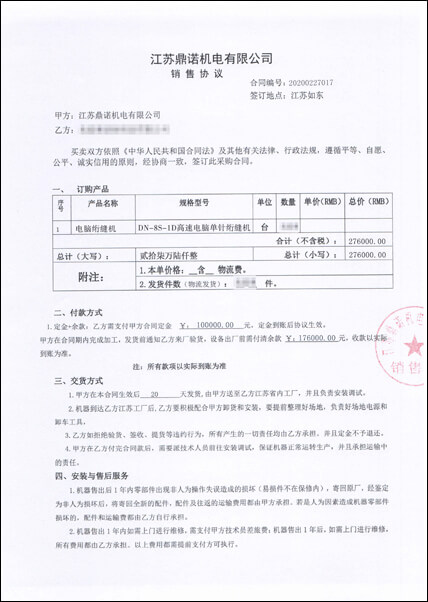 接到一批訂單,來不及生產(chǎn),向鼎諾采購了一批8S剪線型絎縫機(jī),合同交貨期是15天,結(jié)果,一周就交貨,加班加點(diǎn)安裝調(diào)試。效率高、發(fā)貨,感謝鼎諾的支持,我們以后還會(huì)合作的。